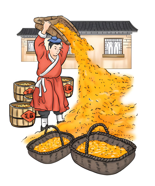 • 出鍋的芝麻要立即用風篩散熱,降低溫度,揚去煙塵、焦末和碎皮。否則,既會降低出油率,也會影響香油的氣味和色澤。